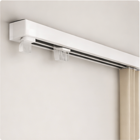 Minimalistiniai aliuminio bėgeliai dieninėms ir dekoratyvinėms užuolaidoms, pritaikyti šiuolaikiniams interjerams.